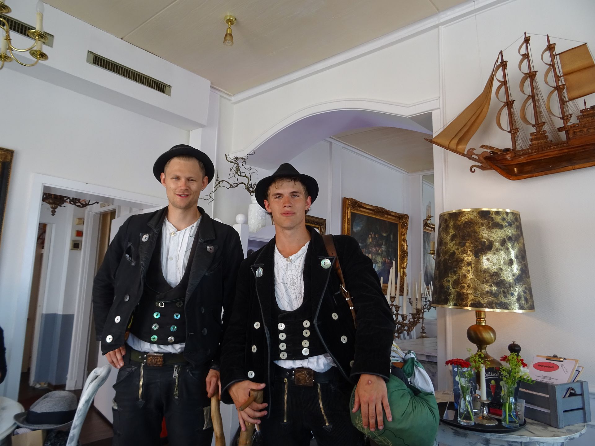 Diese beiden, auf der Walz befindenden jungen Handwerksburschen, traf ich heute in einem Glückstädter Restaurant. Beide sind gelernte Bootsbauer und kommen aus Aurich und Solingen. Sie fragten die Wirtin, ob sie ihren Spruch aufsagen dürften, was sie dann auch taten.