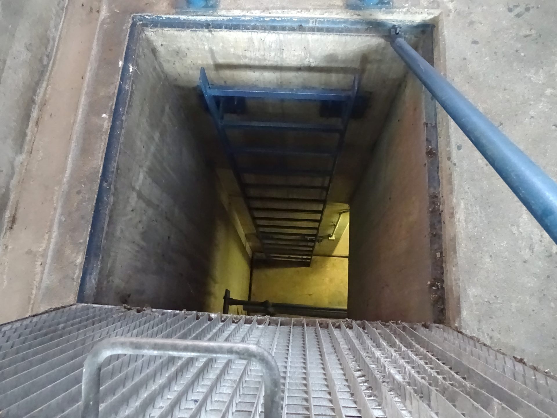 Nach kurzer Einweisung ging es rein in den Pylon und man konnte die Treppen nach oben sehen