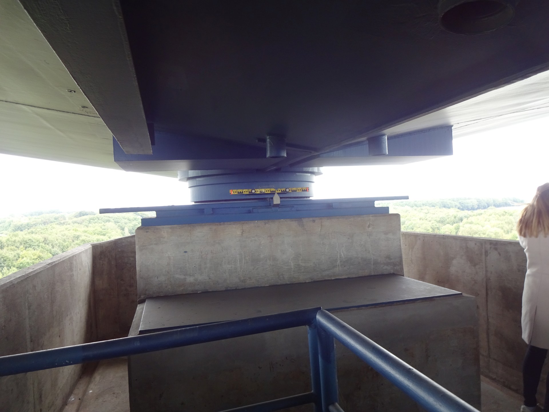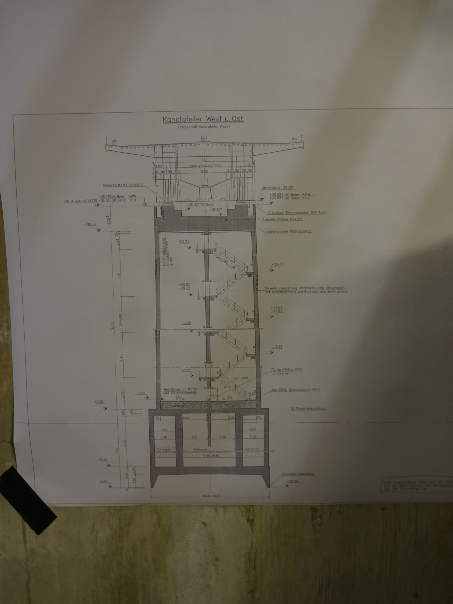 ...Blick auf das Brückenlager. Beim Bau der Brücke stand der Pfeil auf 0