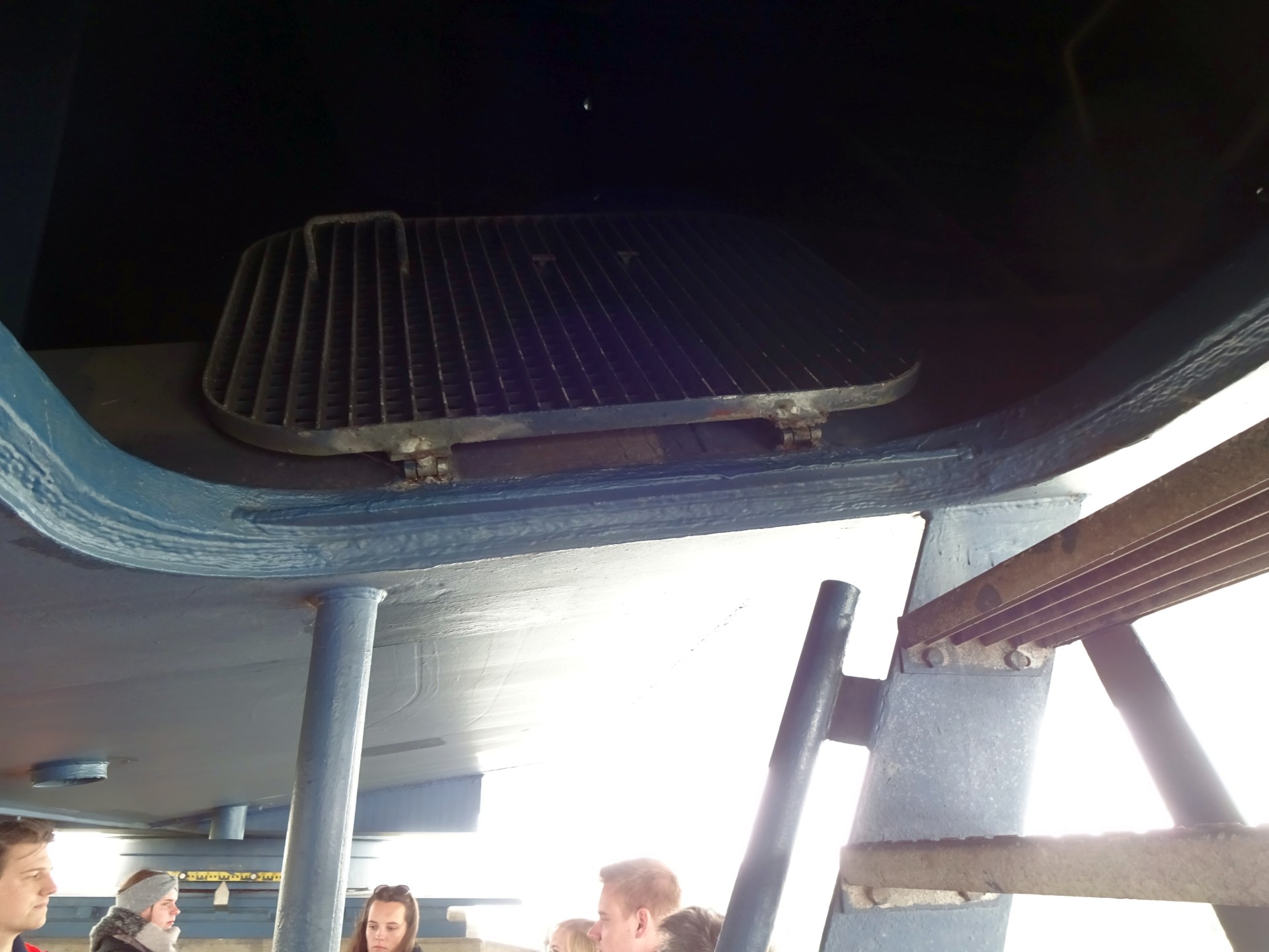 ...dann ging es diese Treppe hoch, durch die Luke ins Innere der Brücke.