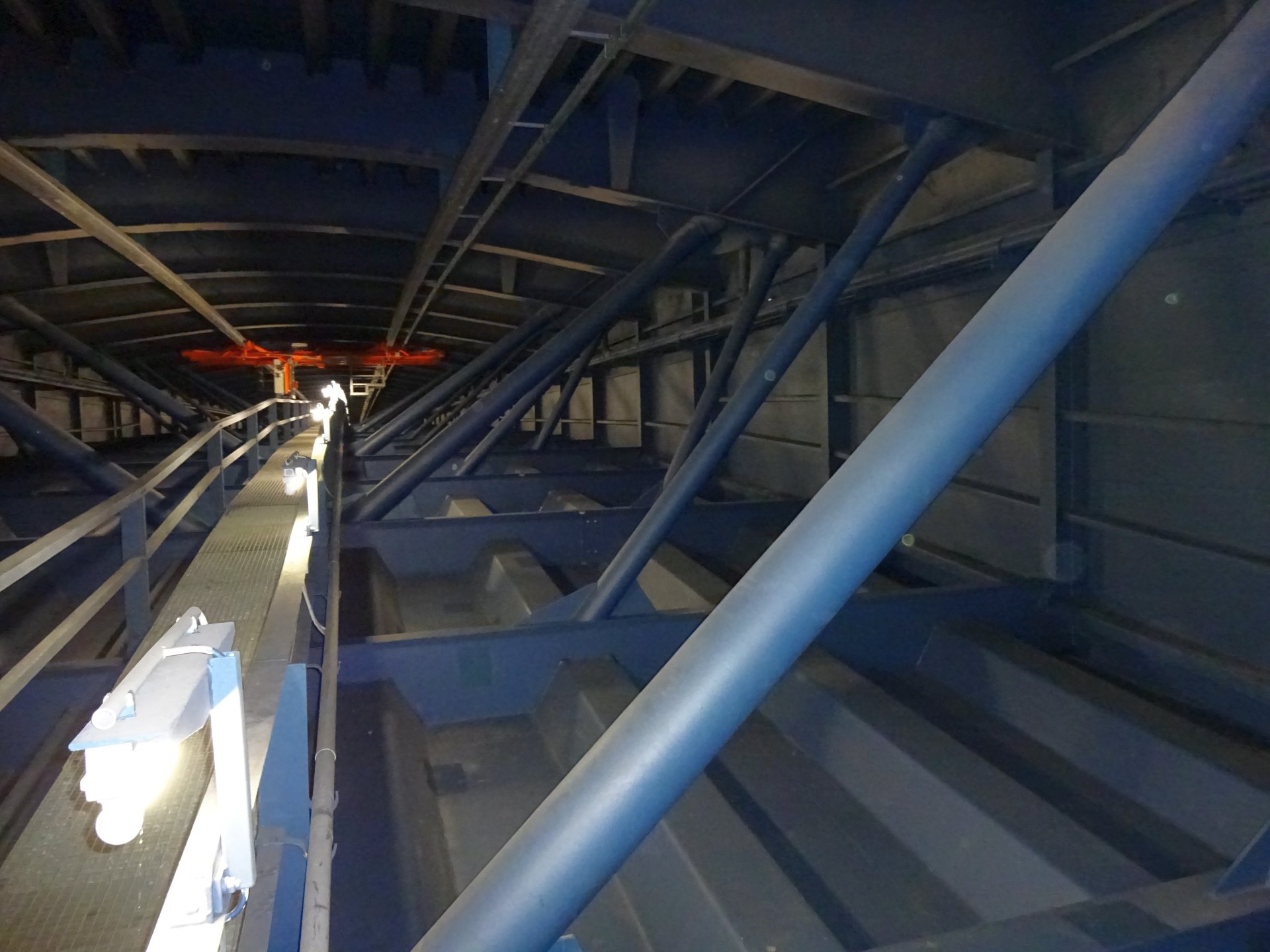 ...und Blick Richtung Steinburg. Die orangenen Teile sind Wartungsbühnen