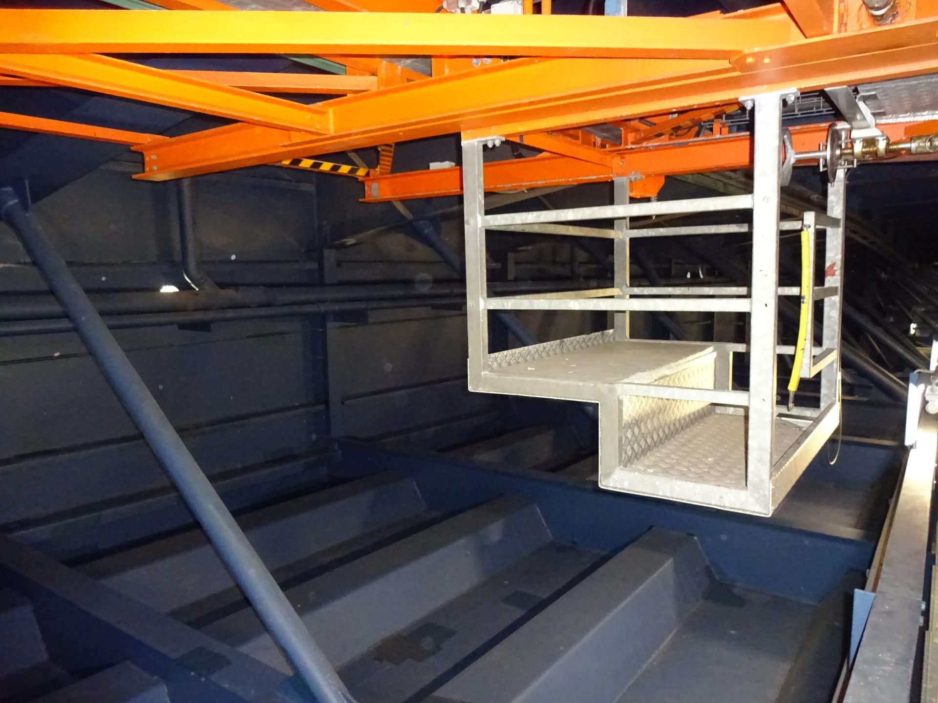Dieses orangene Fahrgestell wird zur Überprüfung und Suche nach Schäden genutzt