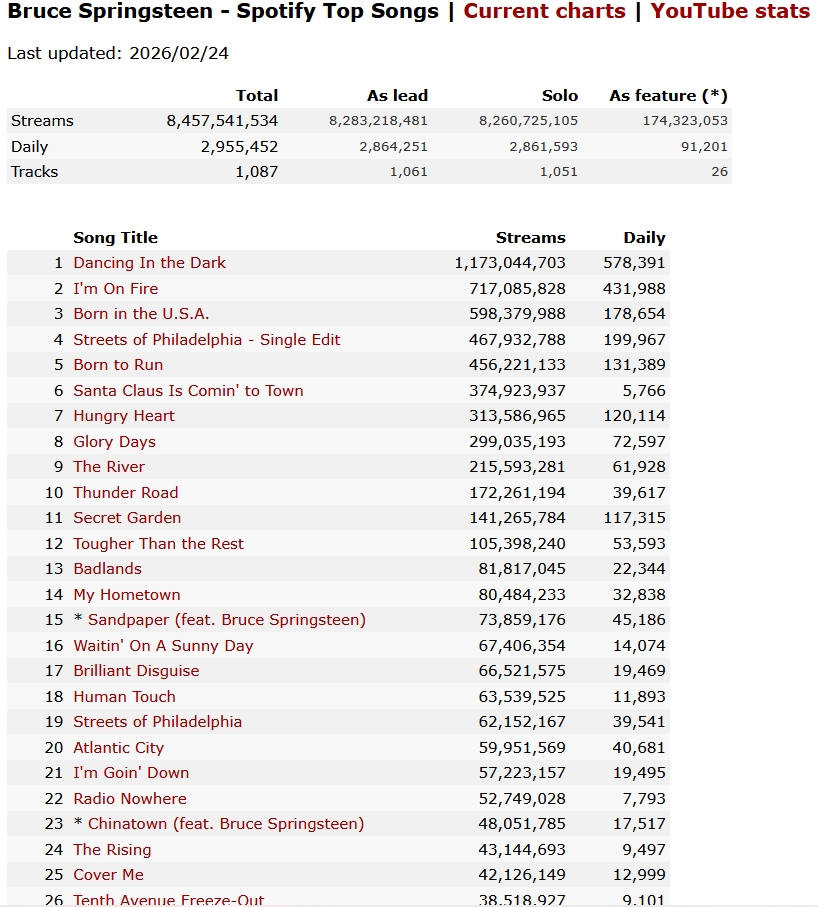 Hier ist eine von Bruce Springsteen mit seinen 30 meistgeklickten Videos.
