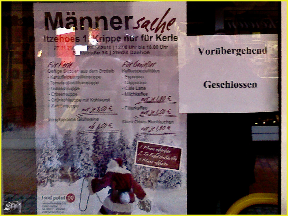 ein Aushang verkündet die offizielle Eröffnung am 21. Januar, man könne aber schon vorher u.a. Kaffee, Frühstück und/oder Kuchen bekommen.