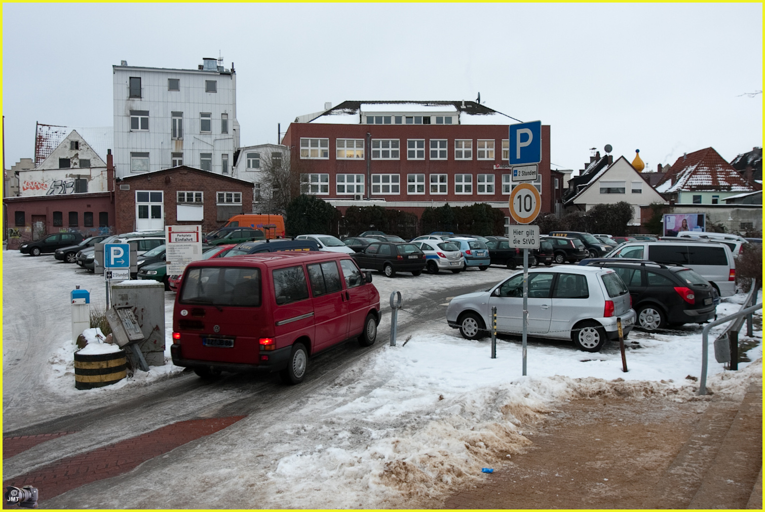 Nun ist es legal, das Parken auf dem Hertie-Grundstück. Allerdings rund um die Uhr, 7 Tagen in der Wochen mit Parkscheibe.