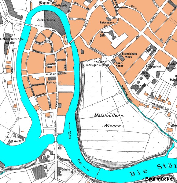 Nach 1850 nutzte dann die Zuckerfabrik das Wasser indem sie es unter dem Stadtarm der Störschleife hindurch bis in die Fabrik in der Wallstrasse leitete.