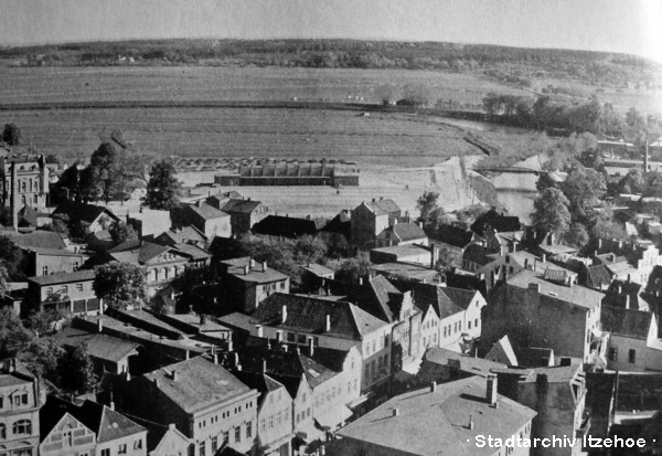 Die Aufschüttungen mit Sand vom Ochsenmarktskamp begannen im westlichen Teil der Malzmüllerwiesen Mitte der Fünfziger Jahre. Die Verbindungsstrasse von der Ritterstrasse zur "neuen Schweinebrücke" an der Viehmarkthalle entstand, ebenso der neue Wochenmarktplatz und die Tribüne mit Sportplatz, welches um 1960 eingeweiht wurde. Der restliche südliche Teil blieb bis zur Zuschüttung der Störschleife eine Wiese.