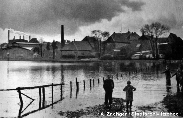 Herr Schwarz vom gleichnamigen Café erzählte mir mal, dass früher die Keller regelmäßig voll Wasser standen. Das Störsperrwerk kam ja auch erst 1975.