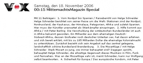 Sendetermine z.B. bei tvtv.de oder klack.de