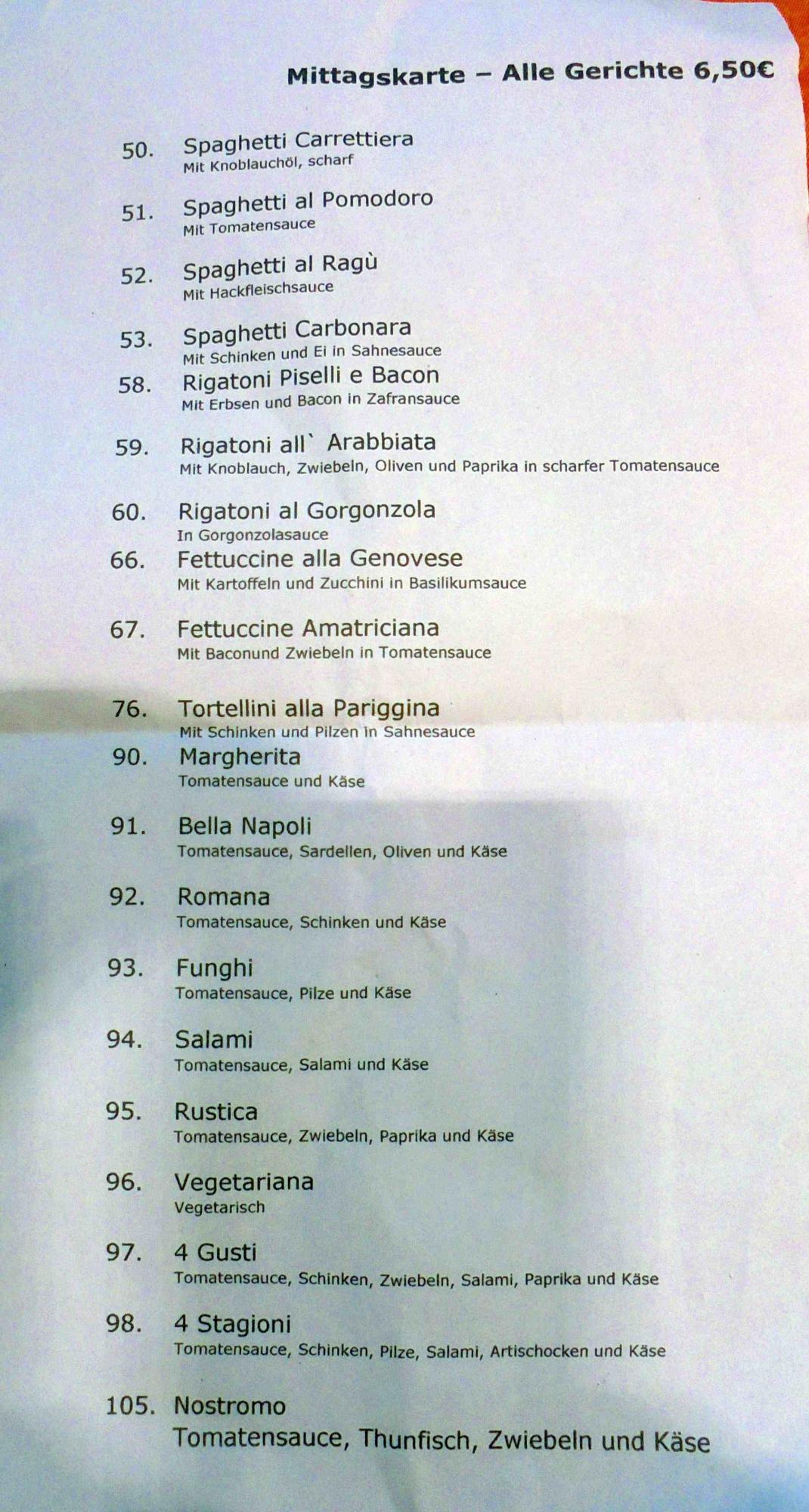 Es gibt eine Liste mit Gerichten, die alle 6,50 Euro kosten.