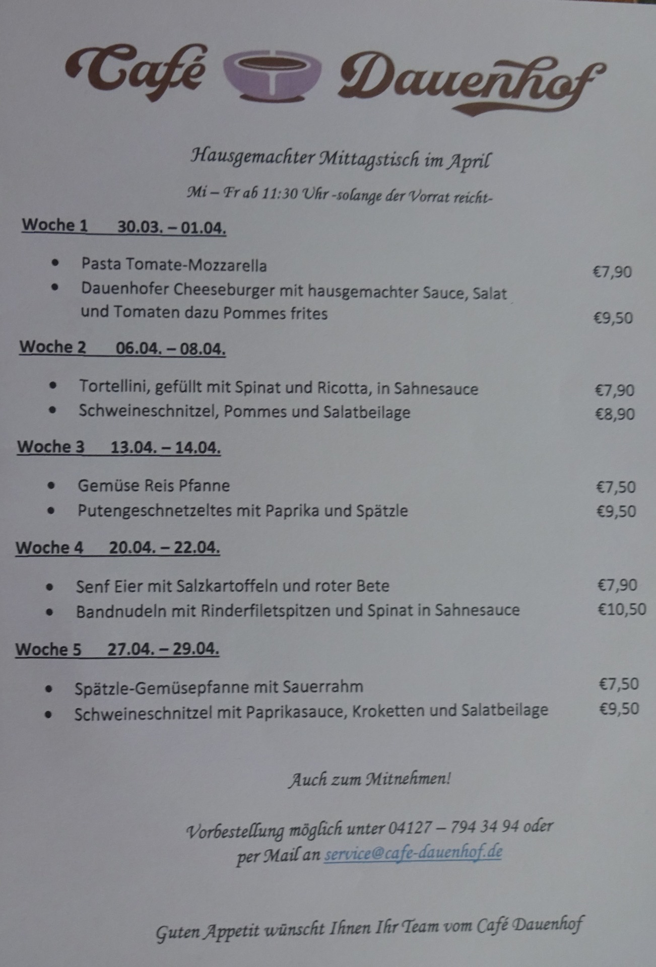 Für die kommende Woche stelle ich mal den Speiseplan und Preise vom Dithmarscher Hof ein: