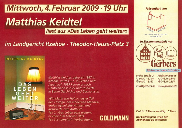 Matthias Keidtel liest aus »Das Leben geht weiter«