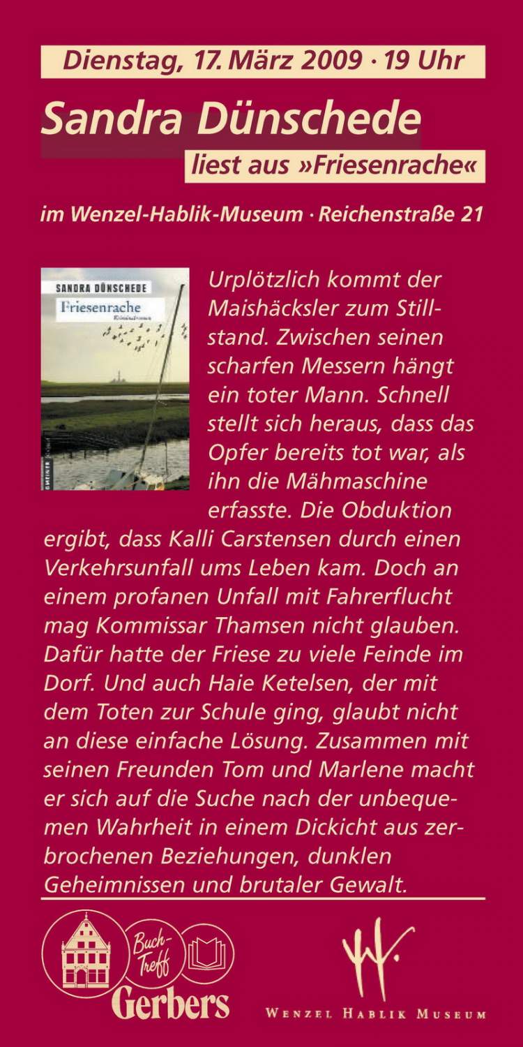 liest aus ihrem neuesten Krimi  "Friesenrache".