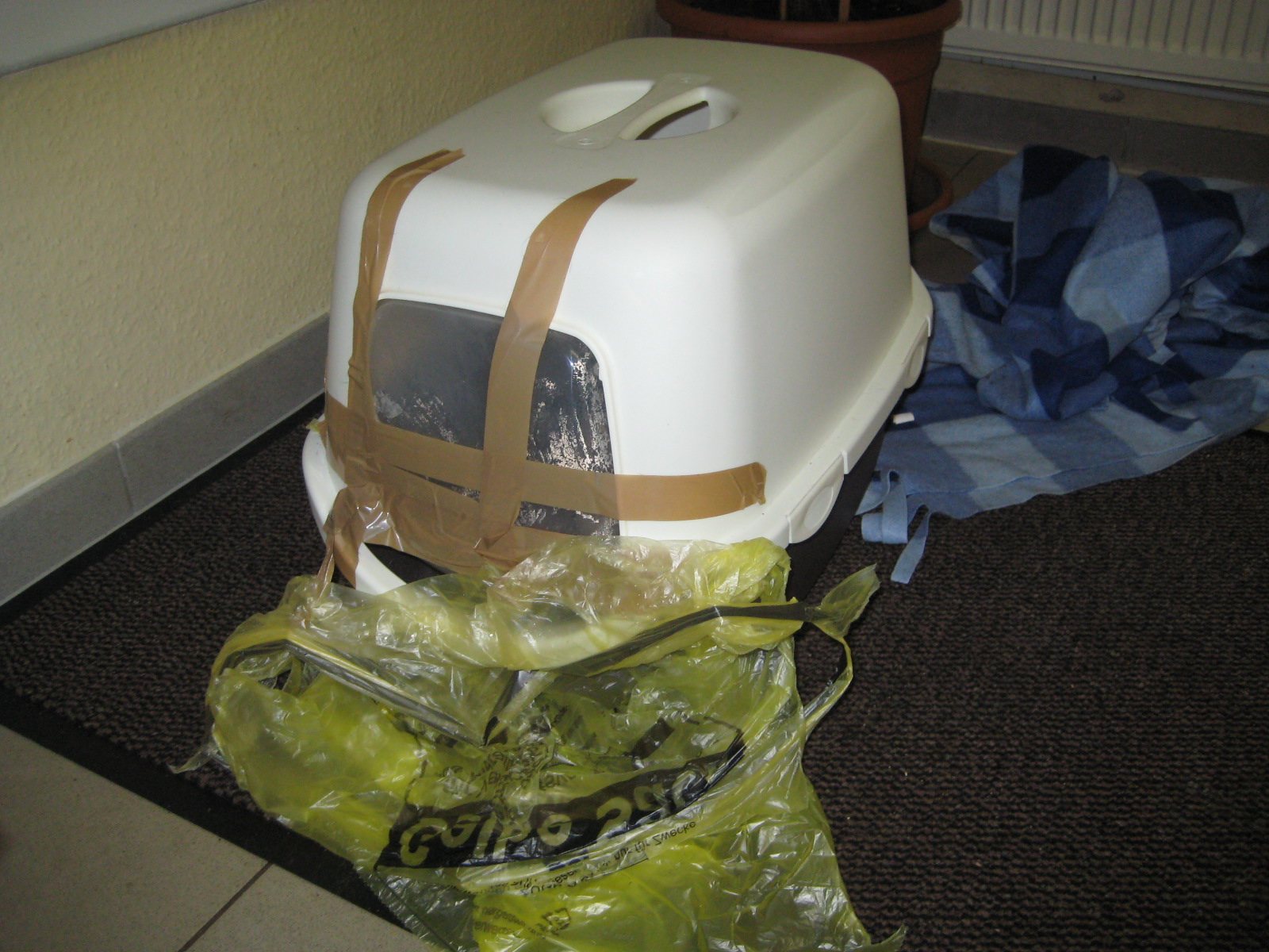 6 Katzenbabys (ca. 4 Wochen alt) wurden heute Morgen vor den Toren des Tierheimes ausgesetzt - in einem Katzenklo, eingewickelt in einem gelben Müllsack und verklebt mit Klebeband.