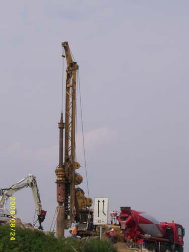 Auf der alten Autobahnbrücke bei der Shell Tankstelle passiert was. Die haben da irgendwie eine Ramme oder sowas aufgebaut.