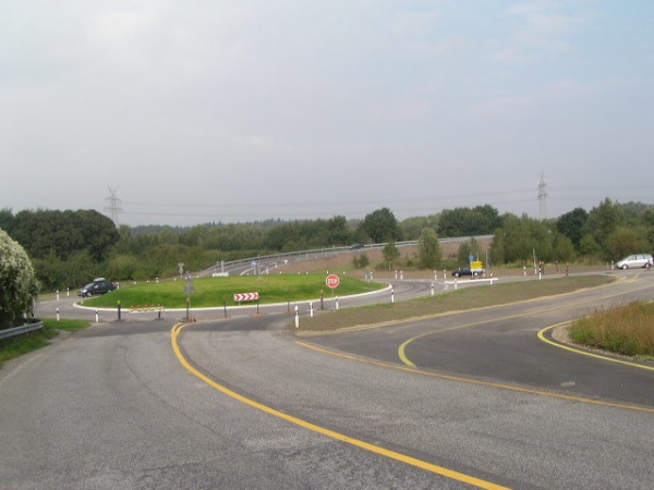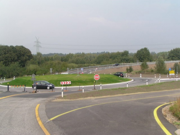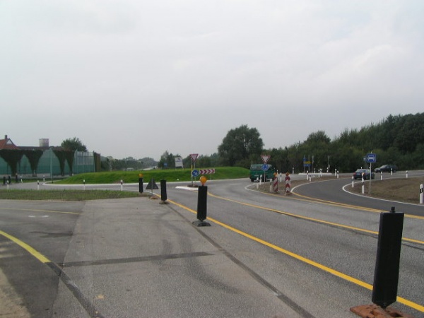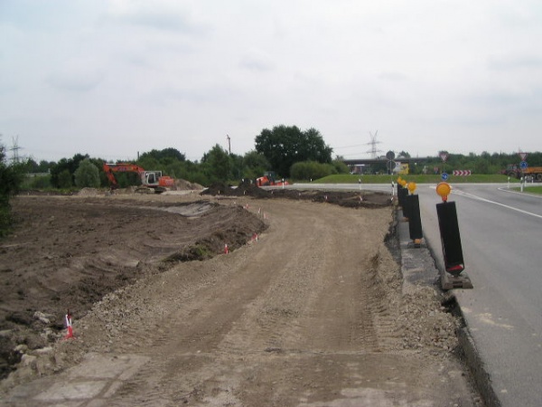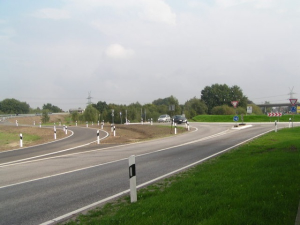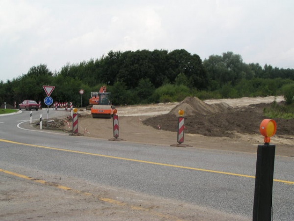 Hier Aufnahmen rund um den fertigen Kreisel. Die neue Straßenführung wird vorbereitet