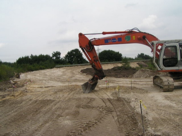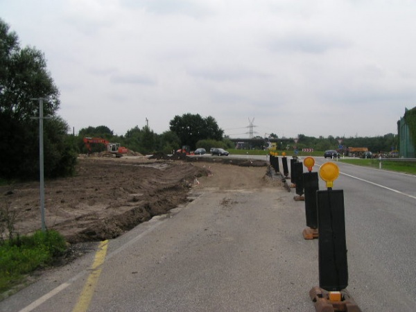 Auf der anderen Seite der Brücke tut sich auch was. Dort wurde die Straße einspurig gesperrt. Warum genau, weiß ich nicht, aber man wird es bestimmt bald sehen können. Der Sandwall auf der Seite ist nun bestimmt schon auf einen Meter gewachsen, das ist ganz schön viel wenn man bedenkt was das für ein langes Stück ist und wie viel Erde da noch ausgehoben wurde.