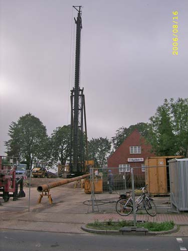 Auch im Norden passiert einiges, auf der Brücke wird kräftig gebohrt und an den Häusern wird nun auch schon der neue Wall aufgeschüttet.