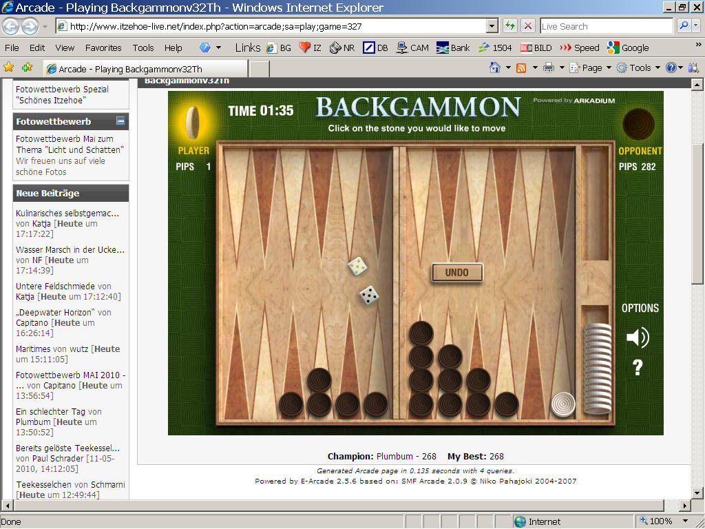 ungefähr so muß es aussehen, wenn man mich im Backgammon schlagen will!