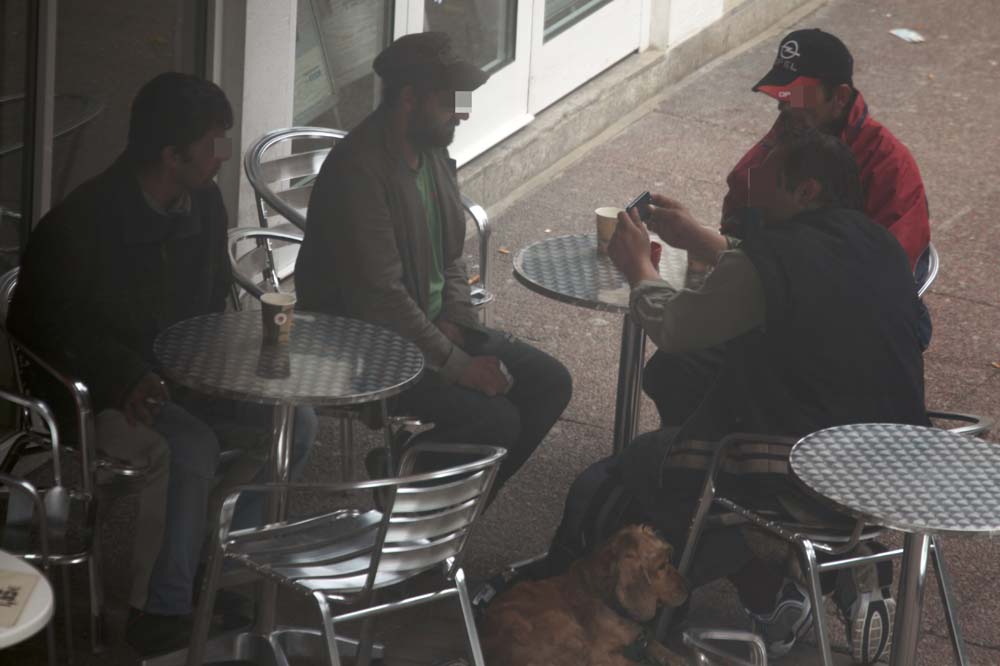 Betteln scheint sich in Itzehoe wieder zu lohnen. Man nehme dafür ein kleines Tier und schon zieht die Mitleidstour. Diese Herren erholen sich gerade von ihrer anstrengenden Arbeit und betrachten die neuesten Schnappschüsse auf ihrem neuen Touchscreen-Handy: