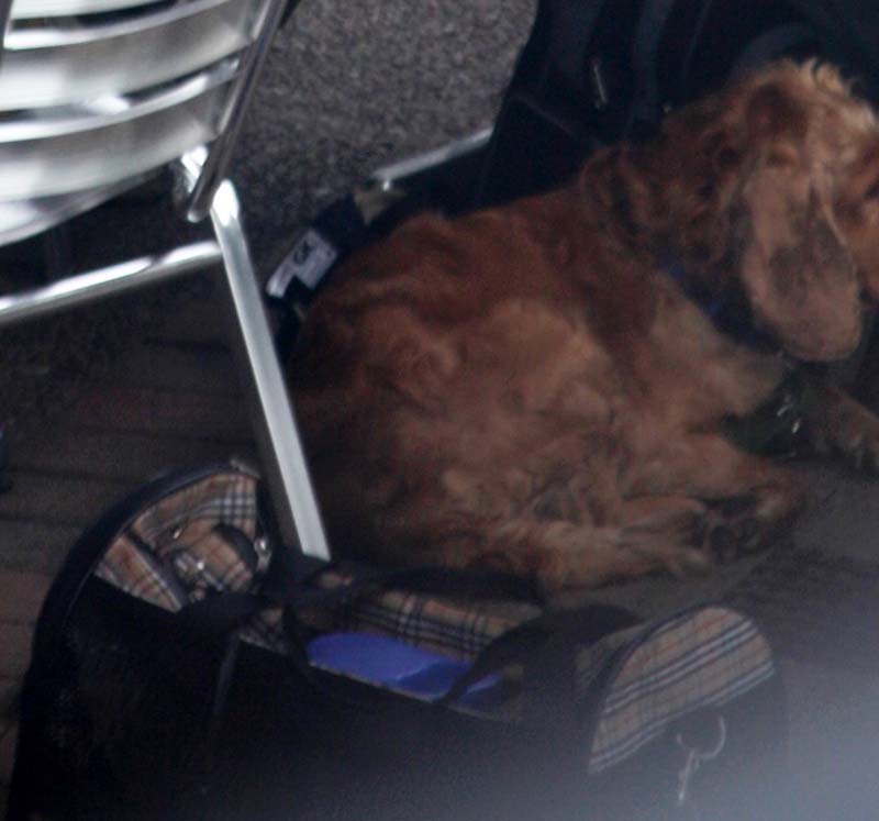 Hunde haben die Herren ja desöfteren dabei, neu ist aber das Tier, das in dieser Tasche (unten auf dem Foto) verweilen darf: